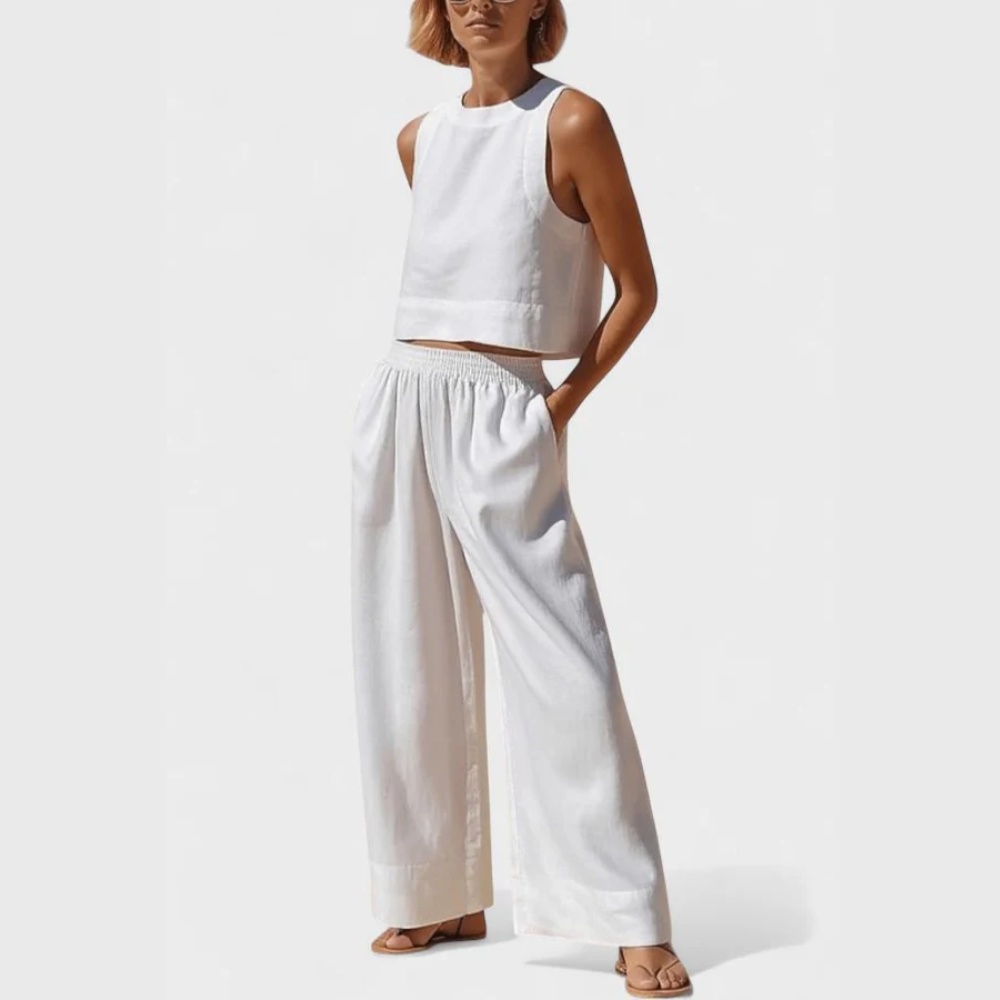 Seamless, modern, and designed to move with you— the Avelina outfit encapsulates the essence of relaxed elegance in a lightweight blend of cotton and linen. Its clean lines, beautifully draping fabric, and relaxed fit create a timeless look that radiates style and comfort equally.